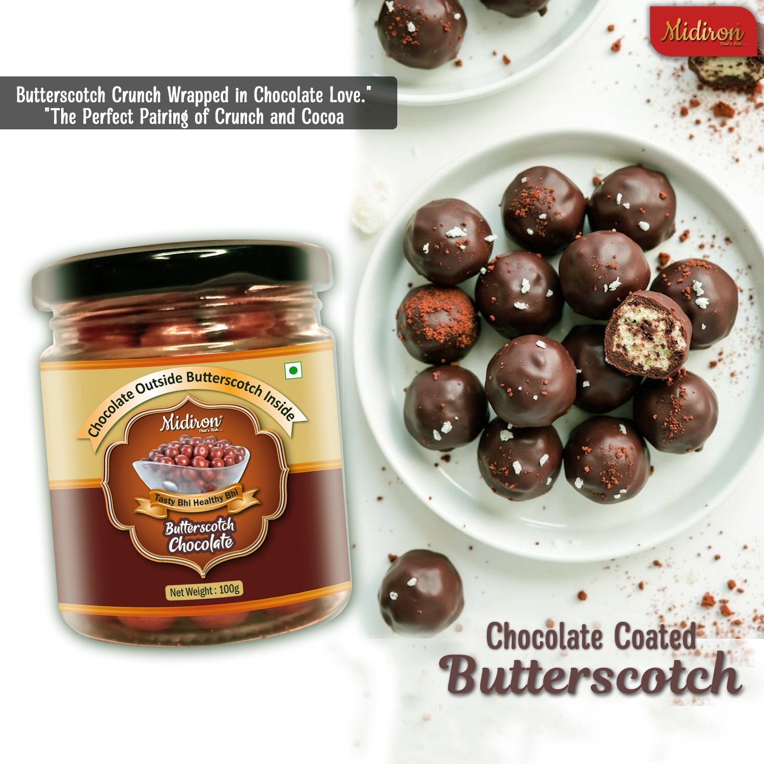 Each batch of Butterscotch Chocolate Balls is packed in airtight, food-grade packaging to preserve their freshness, taste, and texture. The stylish and compact packaging also makes it ideal for travel snacks, desk snacks, and gift hampers. These chocolates have a good shelf life and are designed to maintain their crunchy butterscotch core and melt-in-mouth chocolate layer for months.