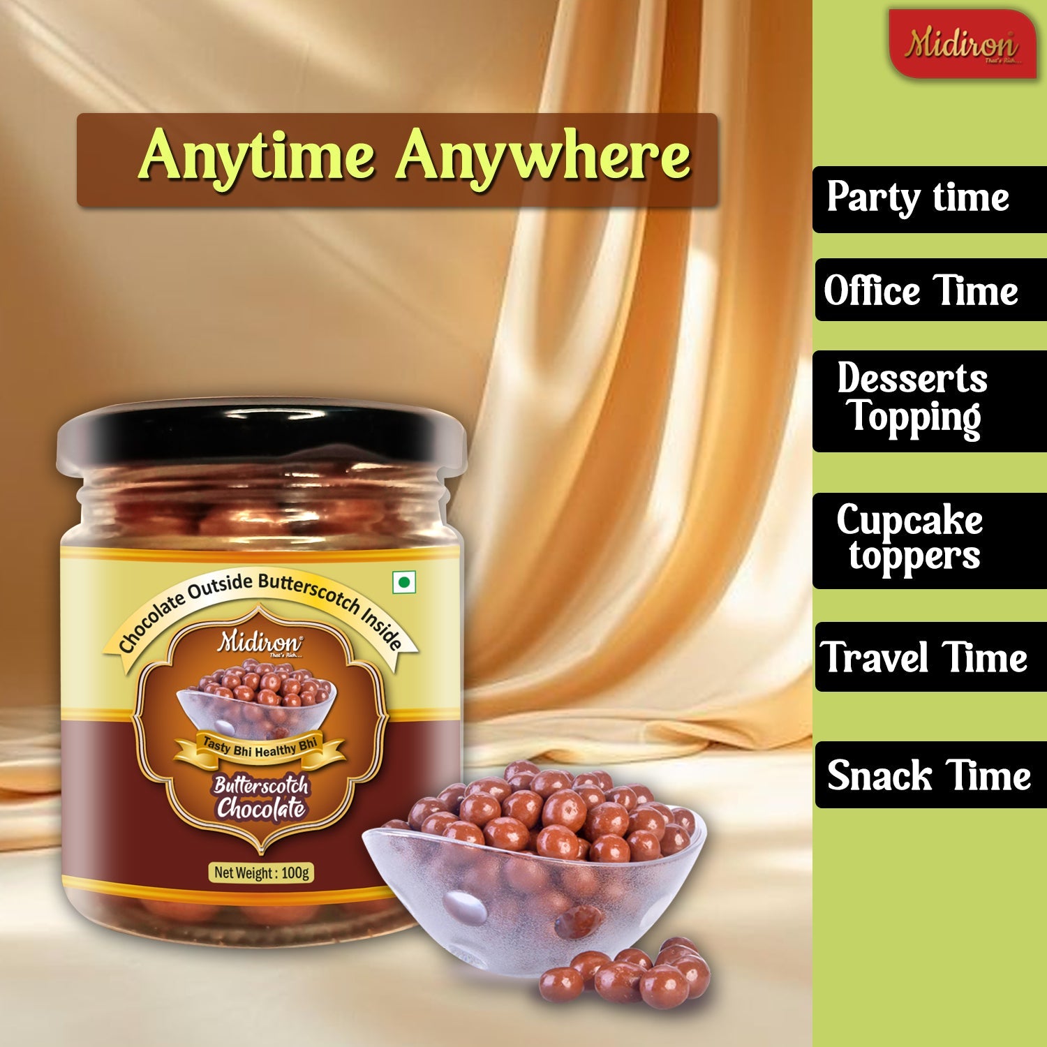 Snacking has never been this delightful. Keep a jar of these butterscotch milk chocolate balls at your desk or in the kitchen for those sweet-tooth moments. They’re also excellent for party dessert tables, cake decoration, and chocolate-based DIY recipes. Drop them into milkshakes, ice cream bowls, or use them as a topping for brownies to give your desserts a crunchy twist.