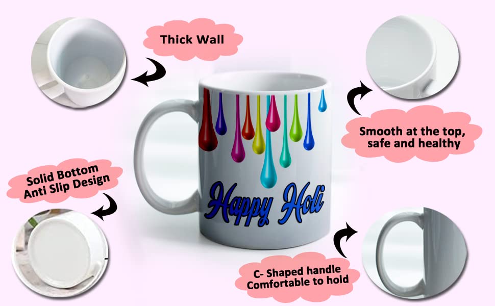 Enjoy a warm cup of tea or coffee in our Holi-themed Printed Coffee Mug, bringing festive cheer to your daily routine.