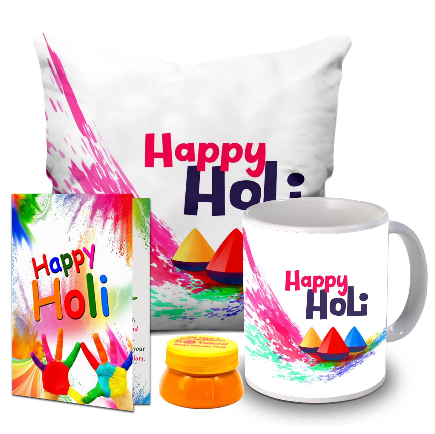 Celebrate Holi with love, colors, and meaningful gifts! Our Printed Cushion, Printed Coffee Mug, Greeting Card & Chandan Tilak set is the perfect way to spread festive joy and warmth.