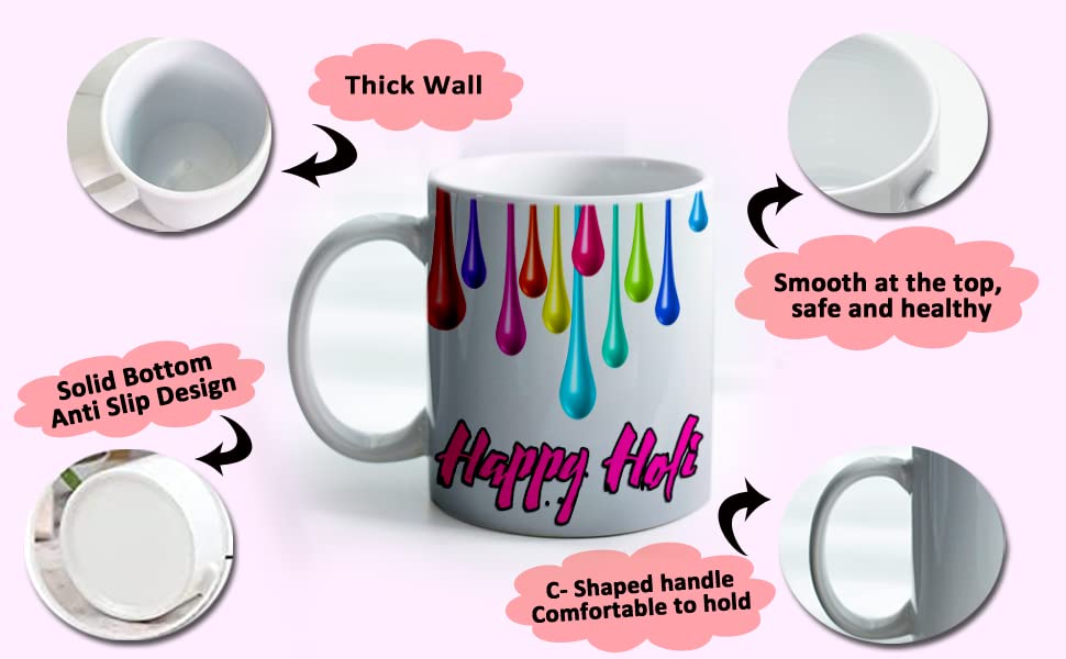 Enjoy your favorite hot beverage in a beautifully designed Holi-themed printed coffee mug. Made from high-quality ceramic, this mug is perfect for adding a festive touch to your morning coffee or evening tea.