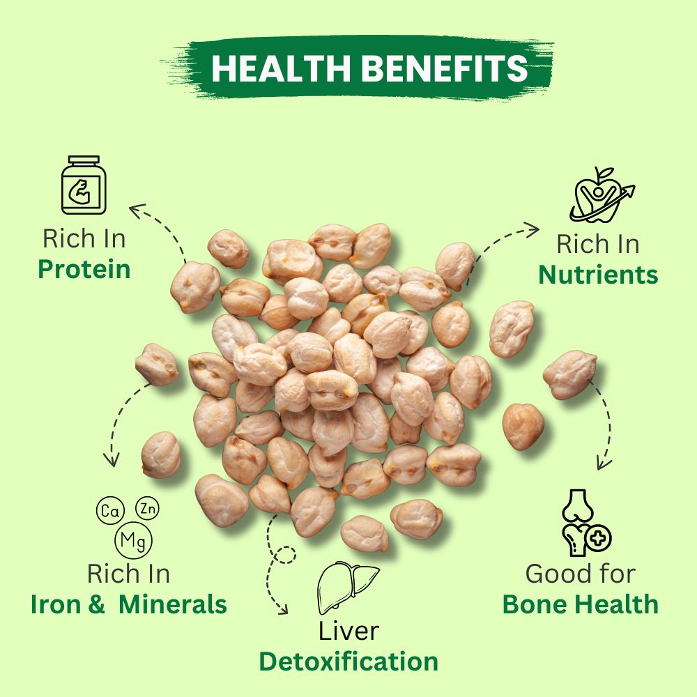 Quality: Handpicked, premium-quality kabuli chana (White chickpeas) Naturally sourced.