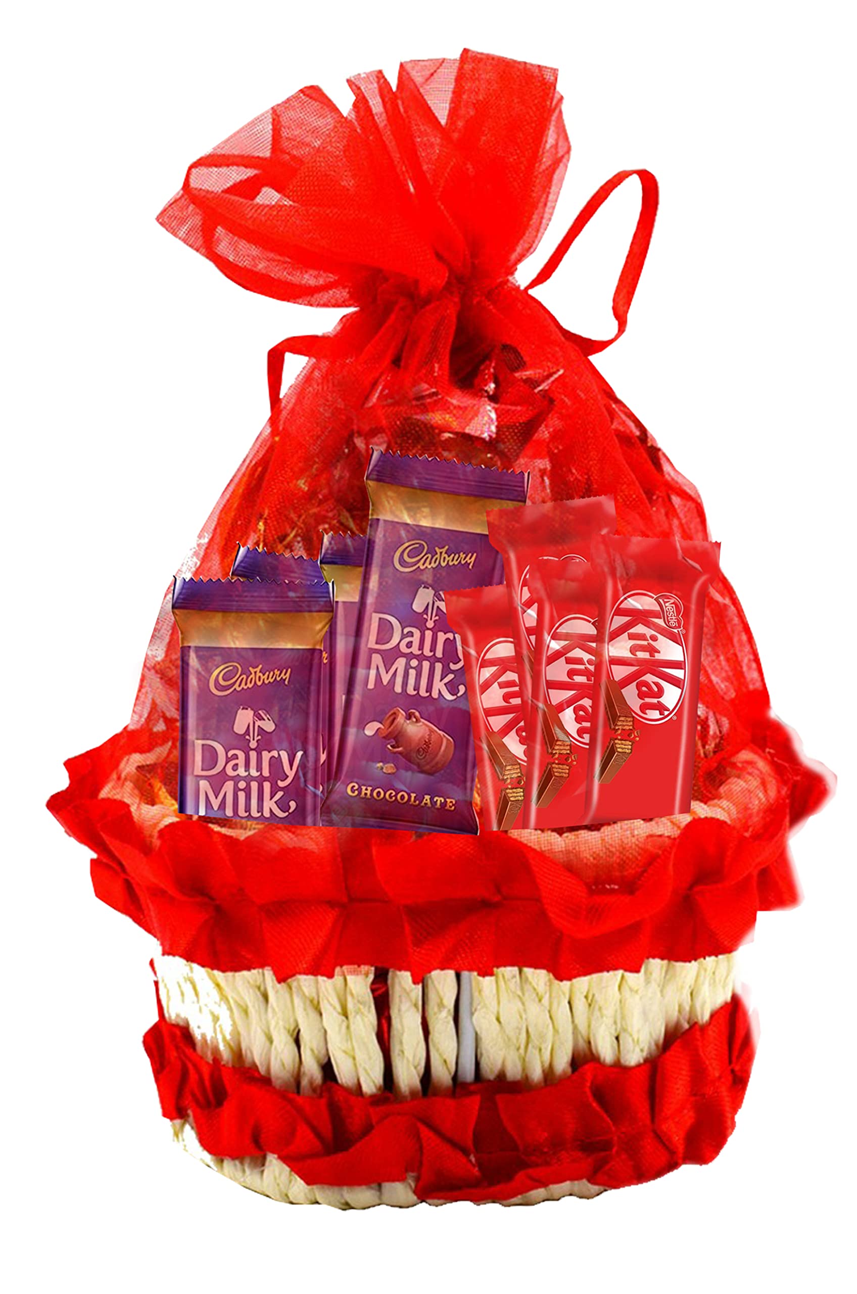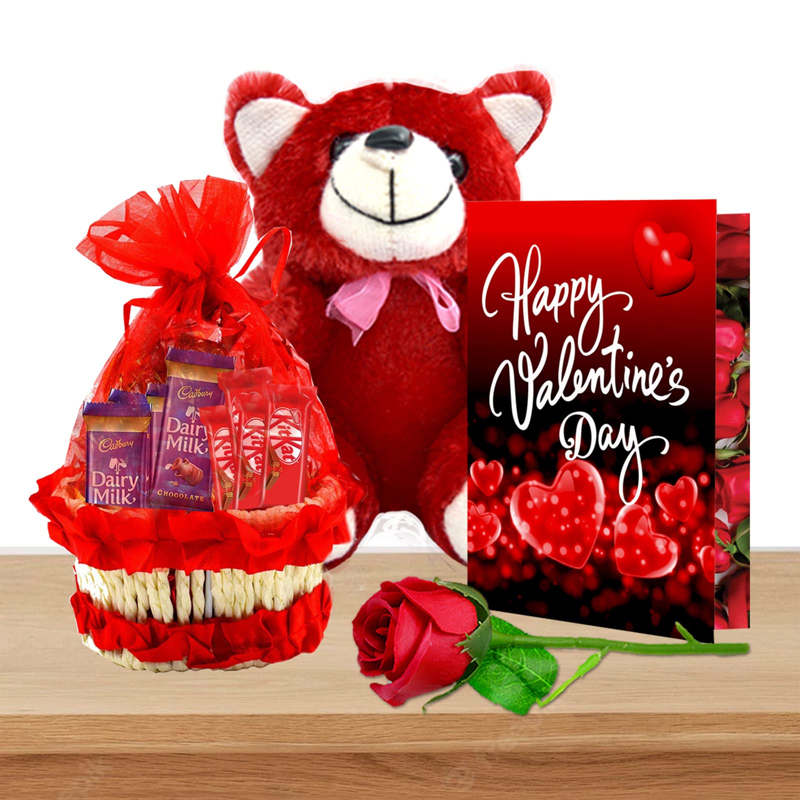- PACKAGE CONTAINS :- This Package Includes 1 Decorative Chocolate Red Basket (5 Dairy Milk (13.2 Gram) each & 5 Kitkat Chocolate Bar (12.8 Gram each), 1 Soft Red Teddy, 1 Artificial Red Rose & 1 Valentine's Greeting Card