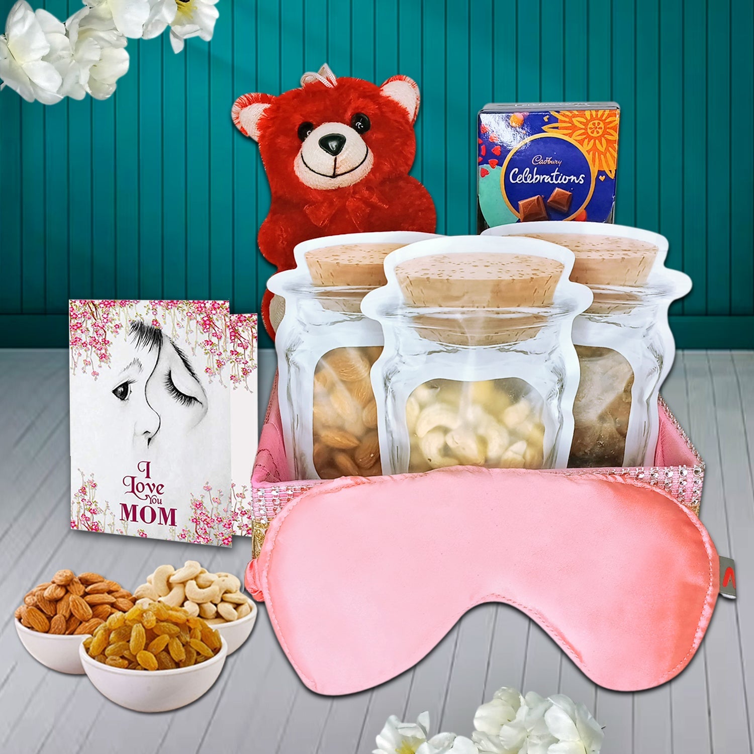Give her something more than just a gift—give her an experience of love, wellness, and relaxation. This Mother’s Day dry fruits gift hamper includes all the right elements to make your mom feel truly special. From health-boosting dry fruits and indulgent chocolates to comfort-driven additions like the eye mask and teddy bear, every item is chosen with care.