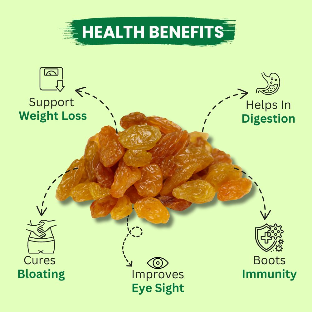 High in fiber, these golden raisins support digestive health, helping to alleviate constipation and maintain a healthy gut. The fiber also plays a crucial role in weight management by promoting a feeling of fullness, preventing overeating, and making it easier to manage portion control. Incorporating these raisins into your diet can also promote healthy gut flora, supporting overall digestive wellness.