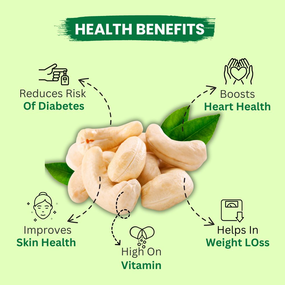 These cashews are also packed with antioxidants like vitamin E, selenium, and flavonoids that help fight free radicals, reduce oxidative stress, and contribute to healthy skin, anti-aging, and cellular repair. They're a convenient way to nourish your body with natural energy, especially for those managing diabetes, following plant-based diets, or looking to reduce inflammation naturally.