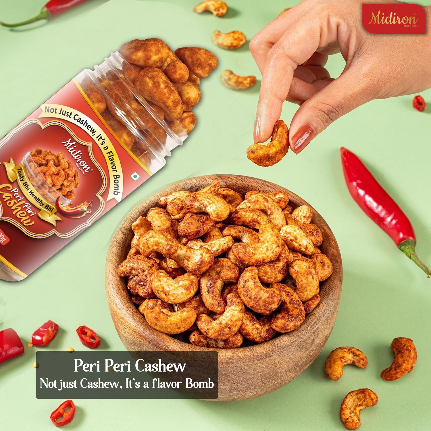 Craving something spicy, crunchy, and satisfying? Our Peri Peri Masala Cashews are made for those who love bold flavors with a punch of heat. These spicy roasted masala cashews are perfectly dry-roasted and coated in an exciting peri peri spice blend that brings together heat, tang, and rich Indian seasoning. Whether you're relaxing at home, packing for travel, planning a party, or simply enjoying chai-time, these crunchy masala cashews for tea-time and snacking hit the spot every time.
