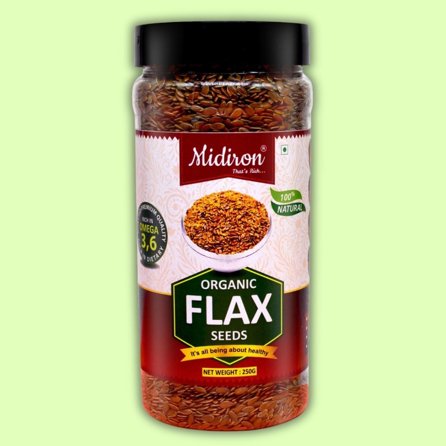 Midiron Organic Flax Seeds, is a premium quality superfood meticulously sourced for your well-being. Packed with essential omega-3 fatty acids, lignans, and fiber, our flax seeds are nature's gift for your heart, digestion, and overall vitality.