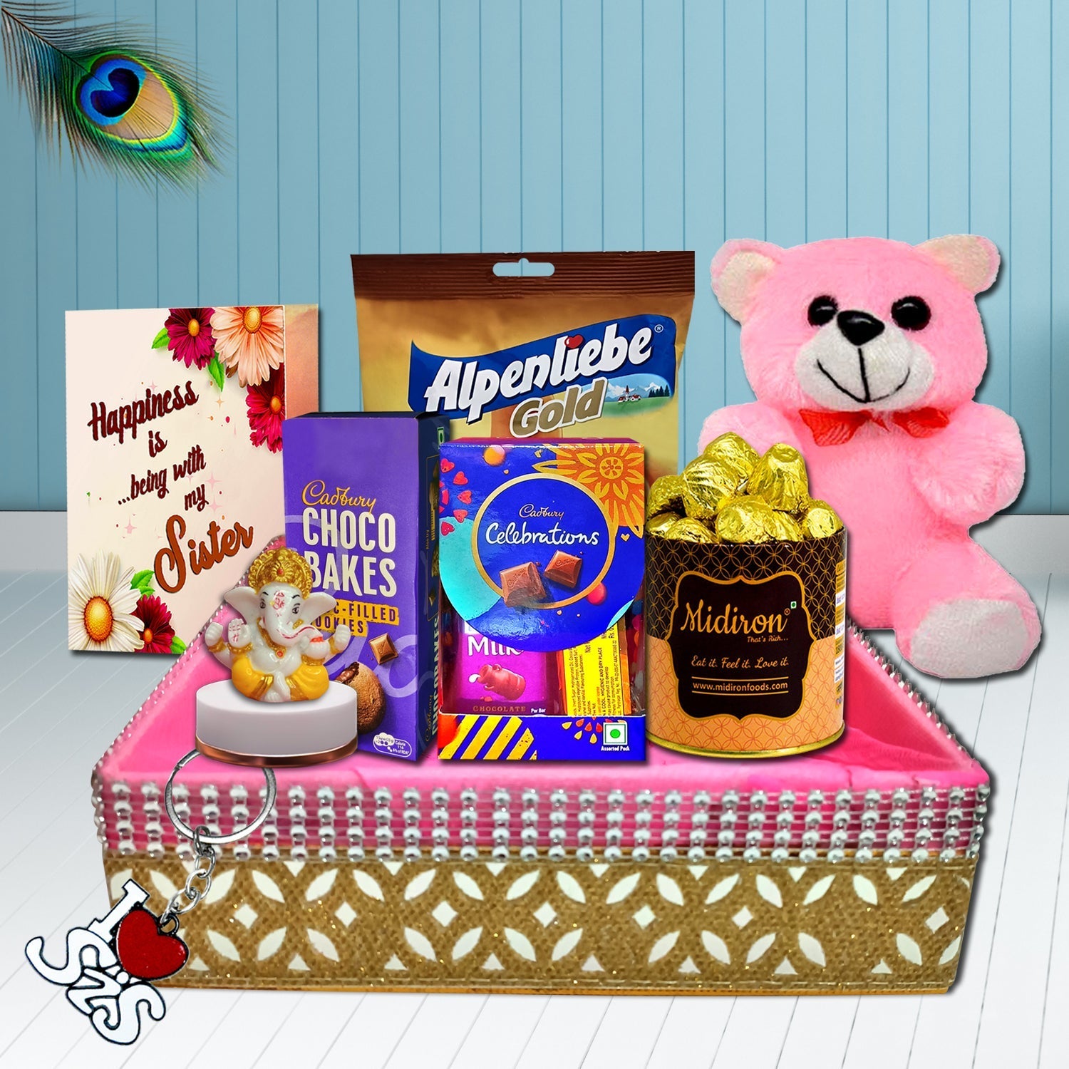 A Heartfelt Celebration with Teddy, Chocolates, Keychain, Greeting Card & Ganesh Idol