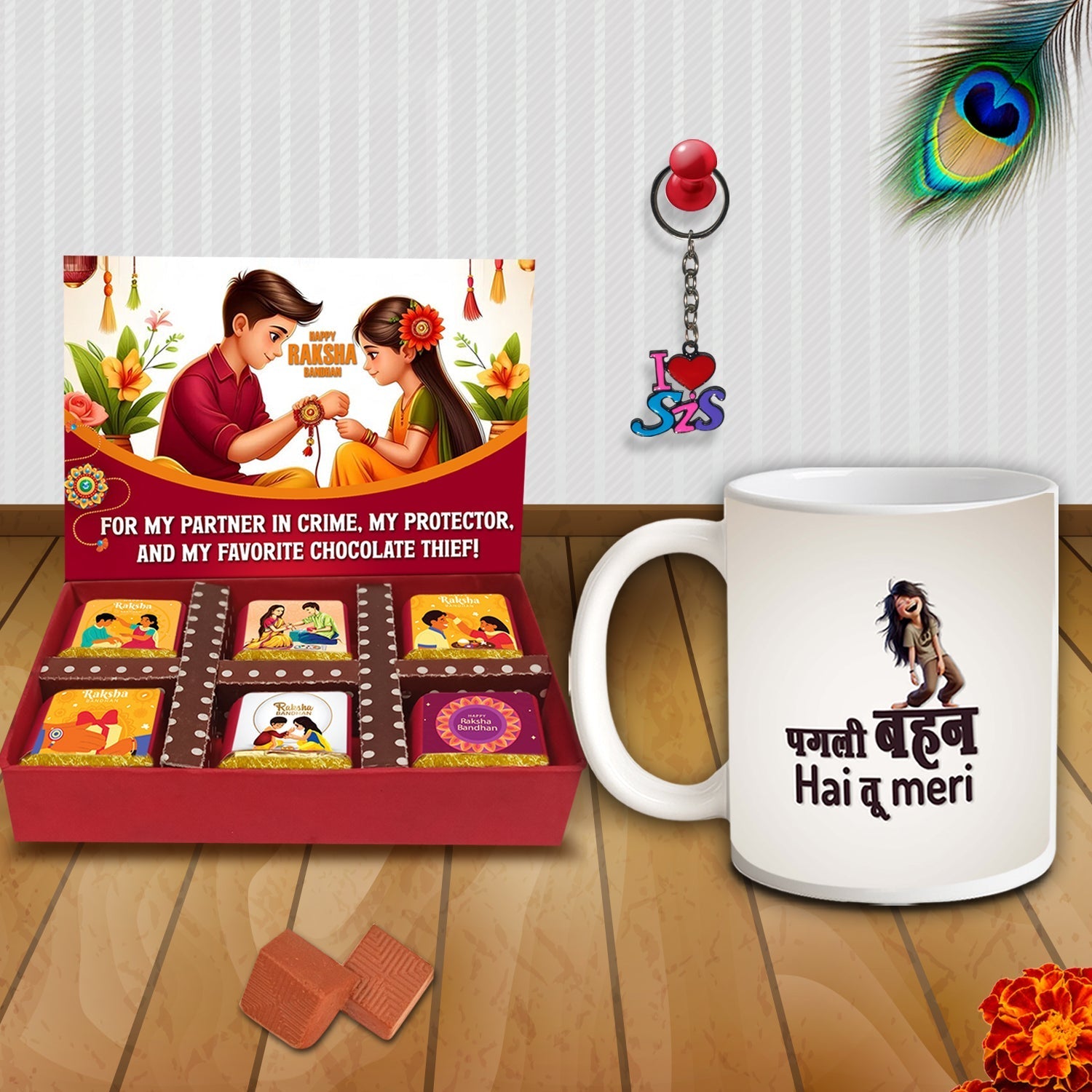 – Chocolate Box, Printed Mug & “I Love Sis” Keychain