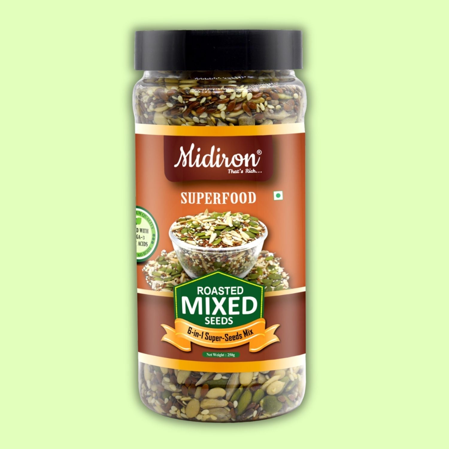 Enjoy the benefits of a high-protein vegan seed snack, a superfood mix for digestion and energy, a roasted seed blend for heart health, a keto-friendly roasted snack, and a nutrient-dense trail mix alternative. Whether you're searching for natural snacks for weight loss, healthy Indian superfoods, or fiber-rich snacks for gut health, this 6-in-1 roasted mix checks all the boxes.