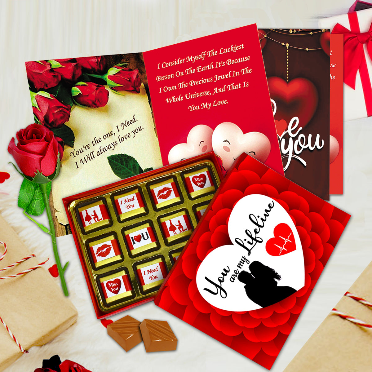 This love gift set includes a greeting card that allows you to express heartfelt emotions in words. Ideal for writing romantic messages, love notes, or special wishes that make the gift more personal and meaningful.