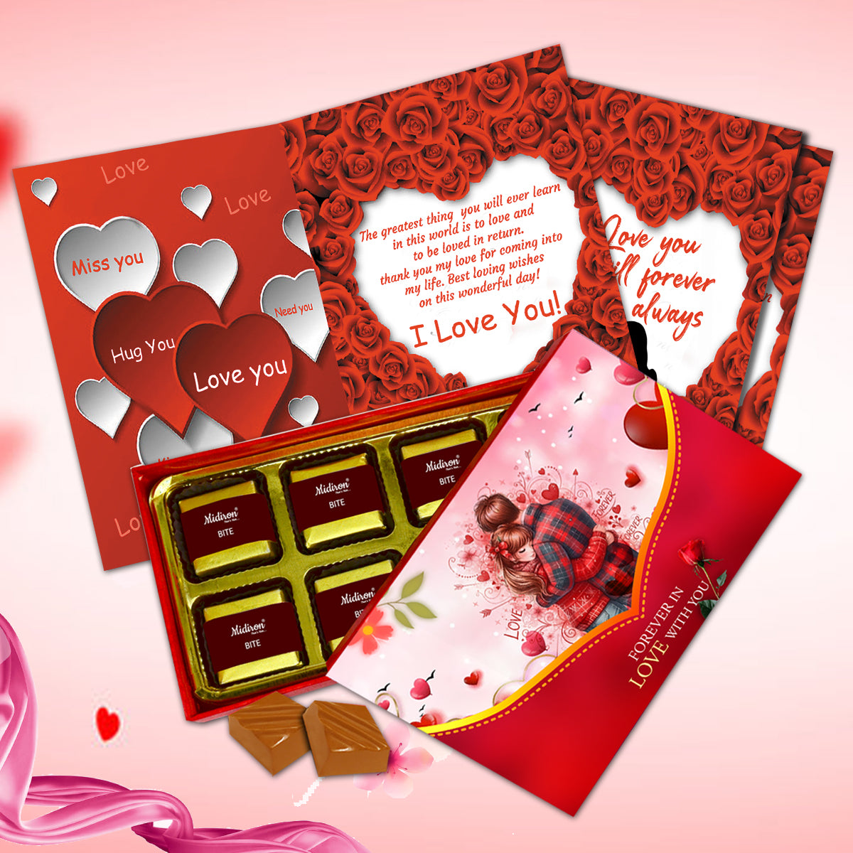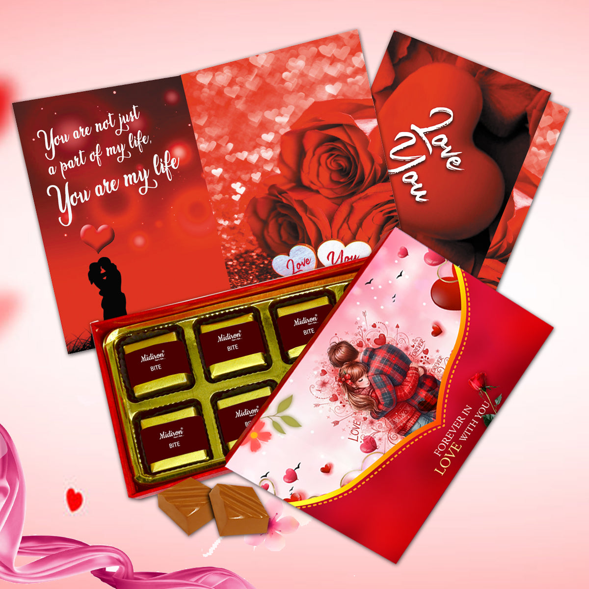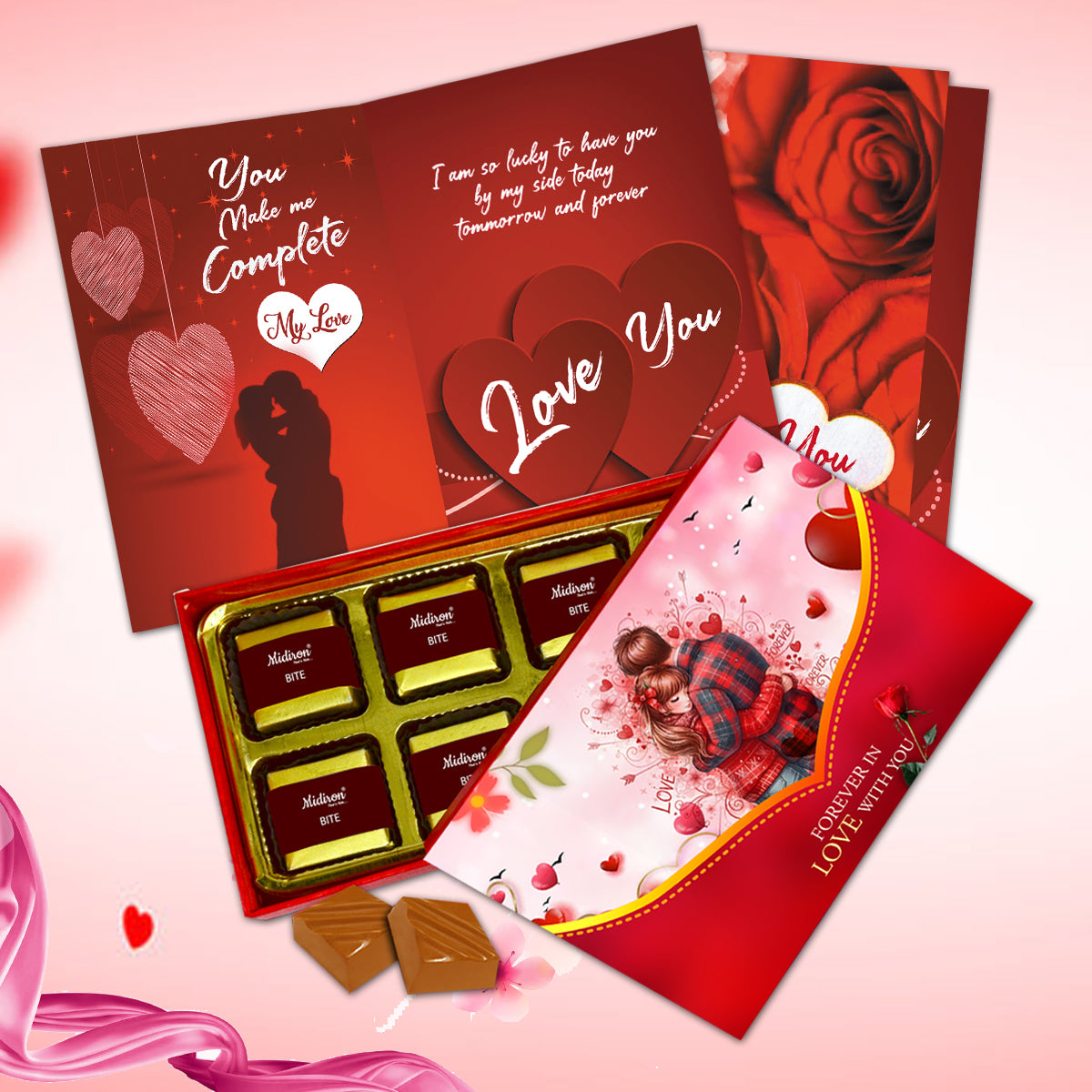 Romantic Gift Combo: A perfect combination of sweet chocolates and a love greeting card, designed to express emotions, affection, and romance in a simple yet impactful way.