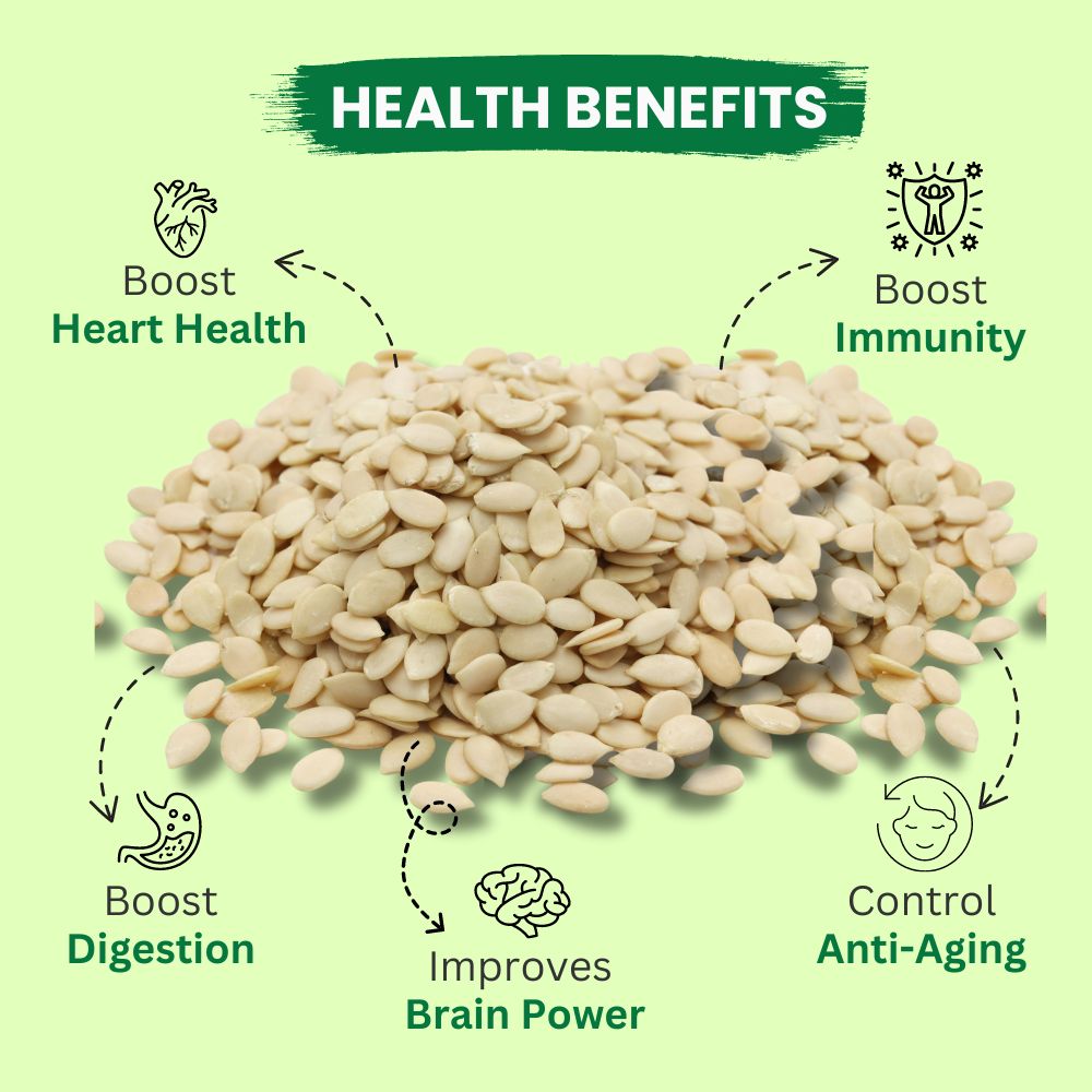 These seeds are a great source of dietary fiber, which plays a critical role in gut health and promoting regular bowel movements. Including raw watermelon seeds in your daily diet helps relieve bloating, supports a healthy digestive system, and improves overall digestive comfort. They act as a natural aid for constipation relief and contribute to long-term digestive balance.