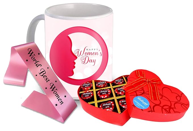 With a charming mug, an elegant sash, and delicious chocolate, this Women's Day surprise is thoughtful, elegant, and meaningful.